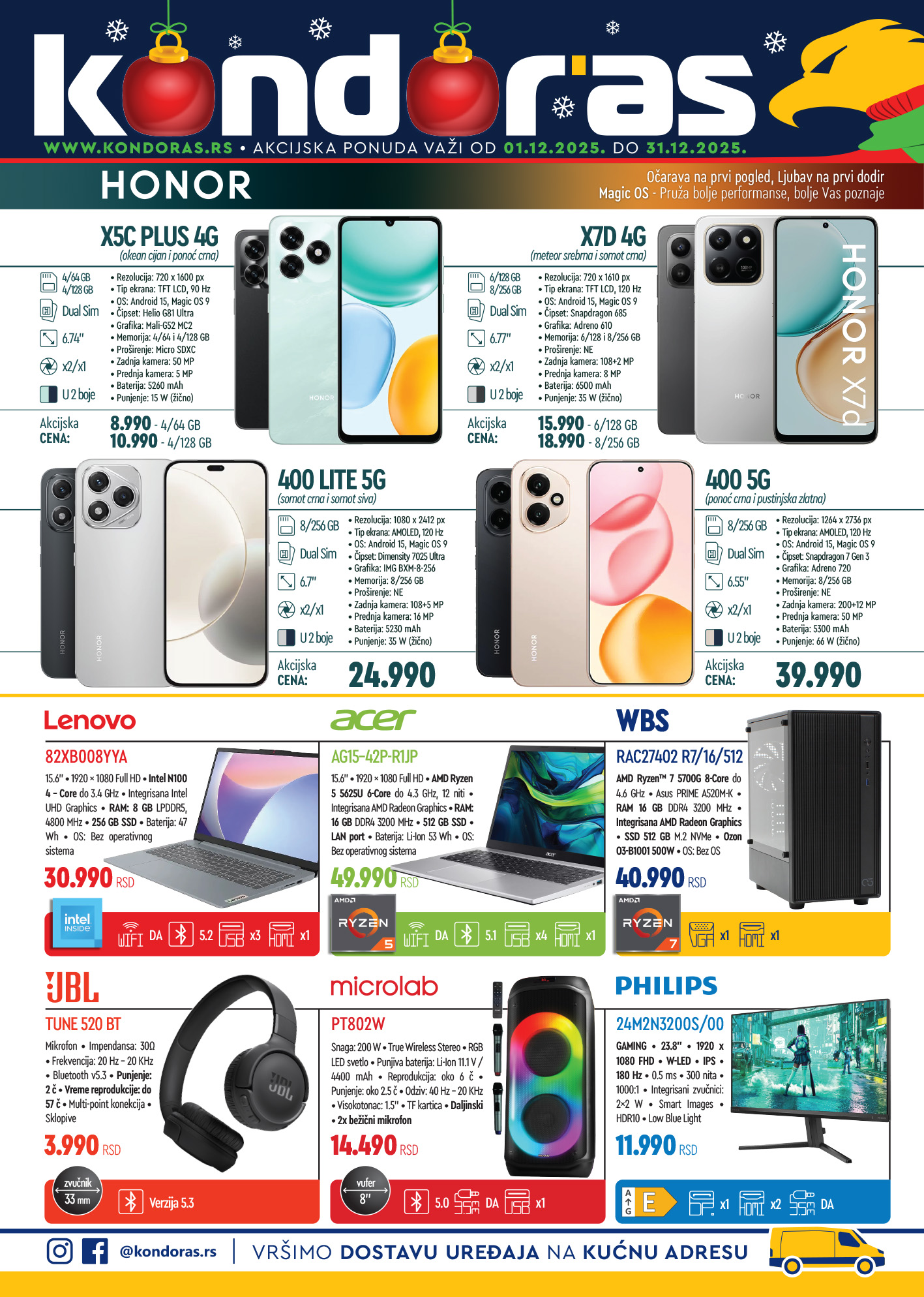 Ovog DECEMBRA za Vas smo pripremili katalog fantstičnih akcijskih cena! Pripremite se za Novogodišnje i božićne praznike uz fantastičnu ponudu Honor i Samsung mobilnih telefona. Tu je i sjajna ponuda bele tehnike, malih kućnih aparata i IT opreme!