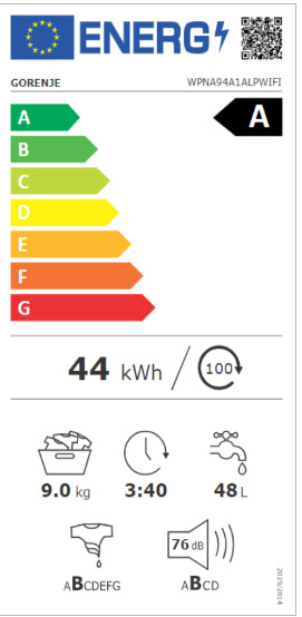 Mašina za pranje veša Gorenje WPNA94A1ALPWIFI, 9kg,1400o/min, Inverter motor, Bela boja