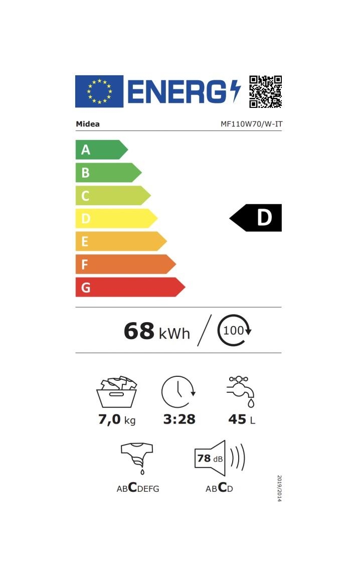 Mašina za pranje veša Midea MF110W70/W-HR, 7kg/1200obr, Bela boja
